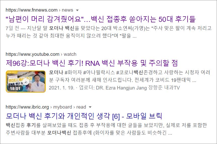 4일 전 아내가 모더나 백신을 맞고 난 후 여러 징후들이 나타나서 몇 가지만 적습니다. 아내는 심각한 상태는 아니지만 일상생활에 약간의 지장을 받을 정도이니 부작용이 없다고 할 수는 없을 것 같습니다. 아내가 지금도 겪고 있는 현상입니다.