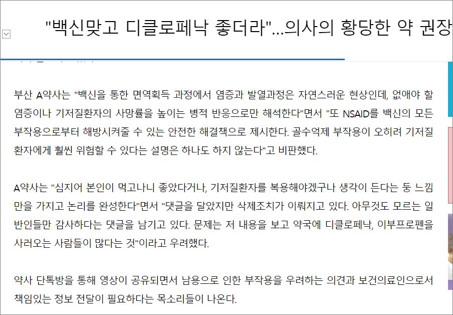 하지만 일부 의사와 약사들은 디클로페낙을 부정적으로 비판하기도 합니다. 백신 후 염증 반응은 정상적인 것이기 때문에 항염증제를 권하지 않는 의사들도 있습니다.