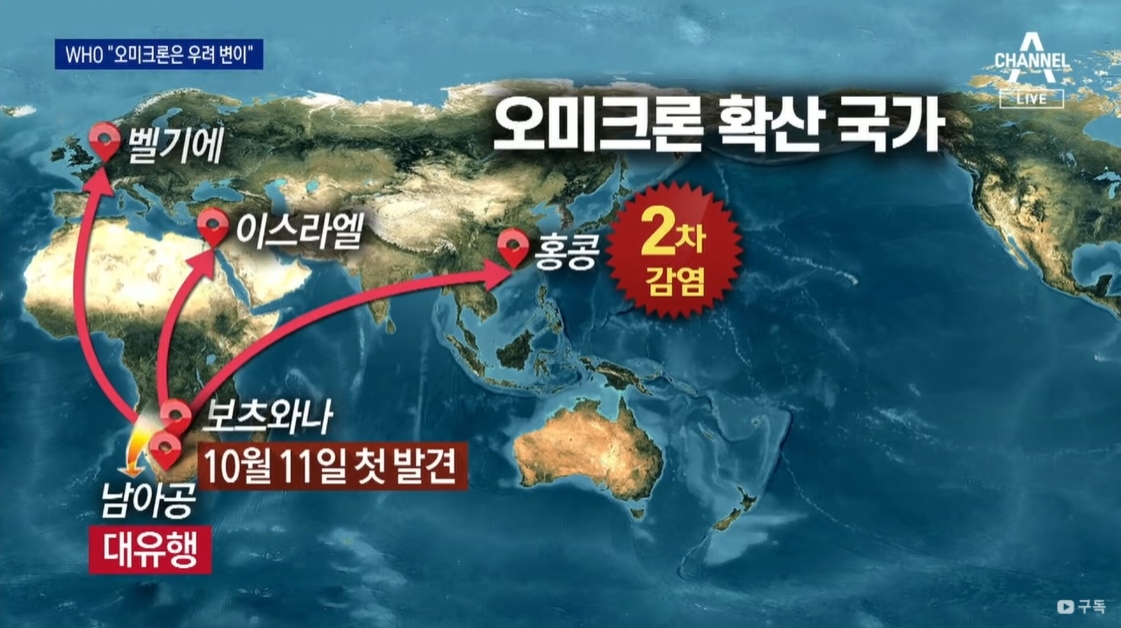 처음 발견은 남아공이었고, 이후 이스라엘과 벨기에 등에서 발견되어 델타보다 훨씬 빠른 속도록 감염되고있습니다. 이로 인해 유럽 연합과 미국 등은 빠르게 여행제한 조치가 내려졌고, 자국민이 아닌 이상 남아공에서 입국하는 이들을 통제하고 있습니다.