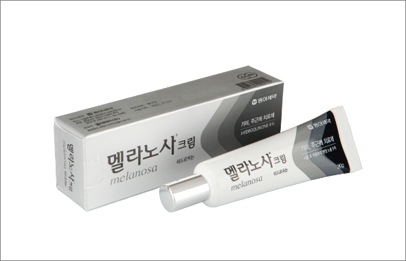 일부 논문에서도 하이드로퀴논 연고를 12주 사용 시 약 40%의 개선 효과가 나왔다는 보고 있을 정도로 탁월한 효과를 지닌 성분입니다. 현재 약국에서 구입 가능한 연고로 도미나 크림, 멜라큐 크림, 멜라노사 크림 등이 있습니다.