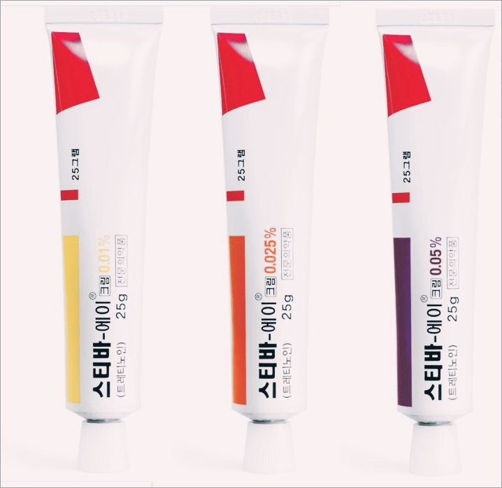 스티바A 크림은 0.01%, 0.025%, 0.05% 세 단계로 나누어져 있으며 쓰이는 용도와 상황에 따라 의사가 결정한다고 합니다.