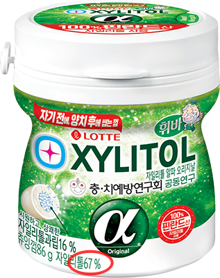 현재 해태에서 나온 자일리톨이 70%이고 롯데는 그 이하이다. 제품마다 종류가 다양하니 가능한 자일리톨 함유량이 높은 걸로 먹는 것을 추천한다.